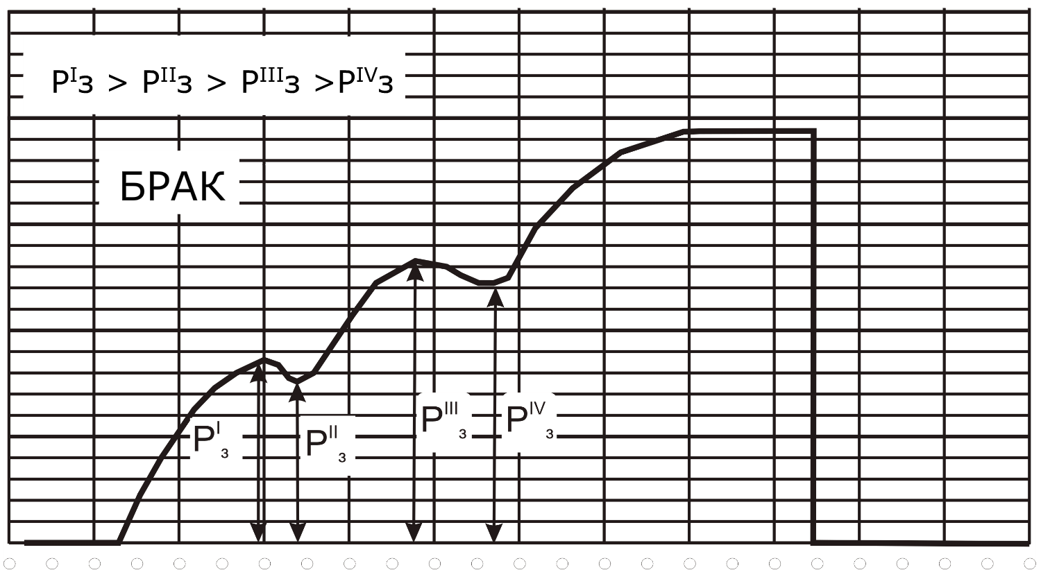 На каждой диаграмме забракованного прессового соединения делается пометка «БРАК» с указанием причины.